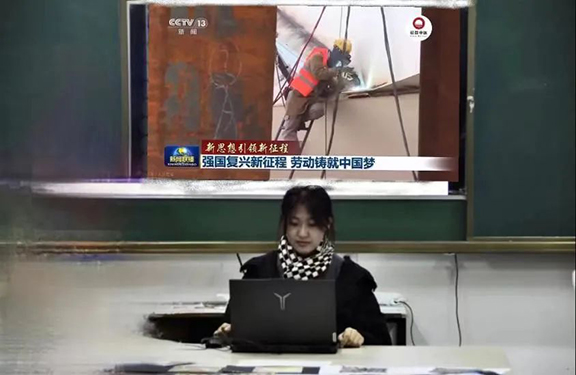 首先,同学们一起观看了强国复兴系列短片,短片以宁波舟山港建设、永定河大桥建设、甘肃八步沙林场植树造林工作、广西西部陆海新通道建设等工作为例,向大家讲述了劳动是强国复兴的必由之路。