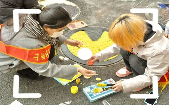 开展妙笔生花,井上添彩井盖作画社区实践活动