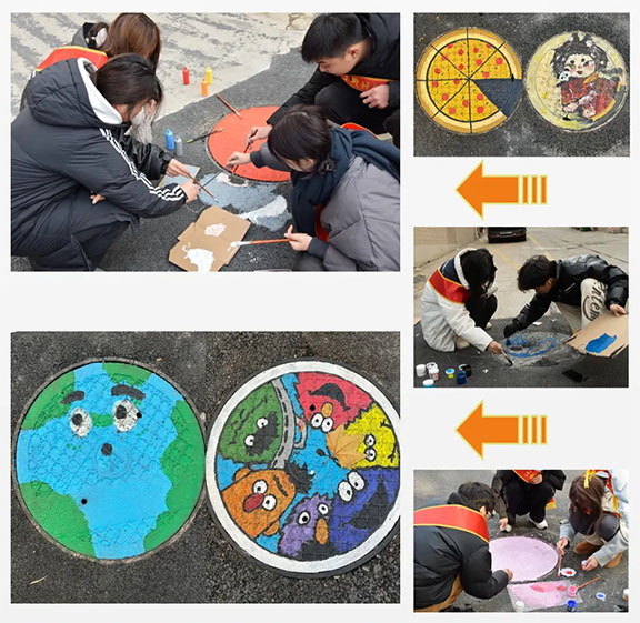 活动开始前,学生们先了解了井盖作画的基本知识和技巧。随后,学生们以小组为单位,进行了深入的讨论和设计。他们结合自己的专业知识和创新思维,为井盖设计出了许多精美的图案。