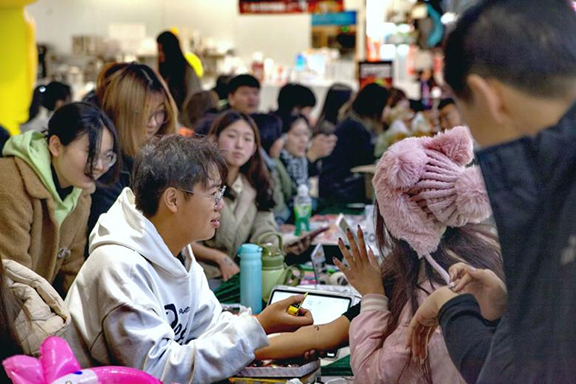 本次活动分为展示区和体验区,为社区居民提供了丰富多彩的文化服务。在展示区,学生展示了他们精心设计的作品,包括创意产品、艺术品、手工制品等。这些作品不仅展示了学生们的创意才华,还体现了当代设计的潮流和创新理念。社区居民们在展示区内畅游,欣赏着每一件作品的独特之处,与学生们交流创作灵感和设计思路。