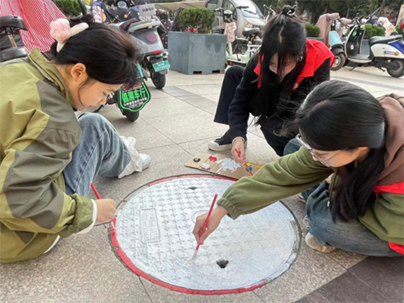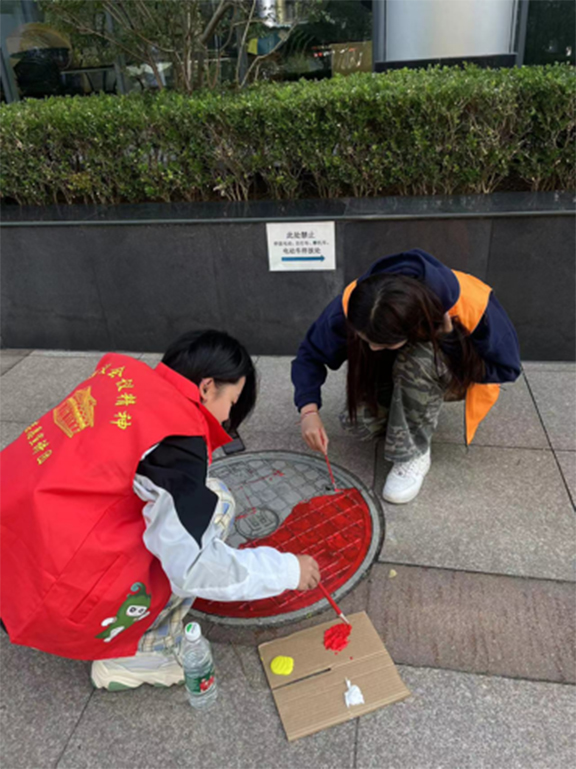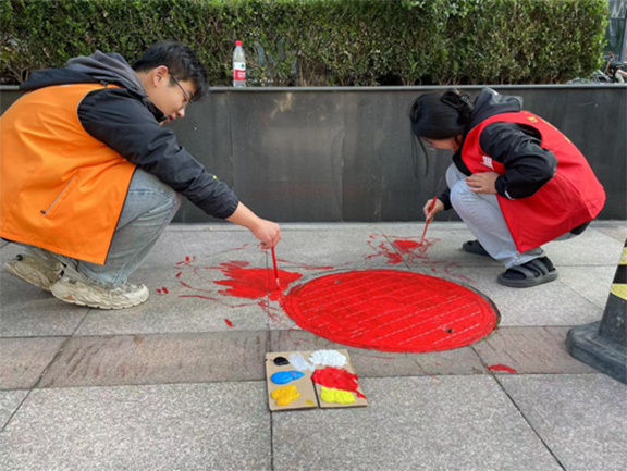 此次活动的成功举办,得益于社区居委会的支持与协助。在他们的努力下,志愿服务队的队员们圆满完成井盖彩绘的活动。井盖彩绘的成功举办也极大地提升了社区凝聚力和公众对社区环境的关注度,让红色精神渗透生活,点亮生活,充分发挥了yl8cc永利官网在推动社区发展和红色文化传承方面的积极作用。