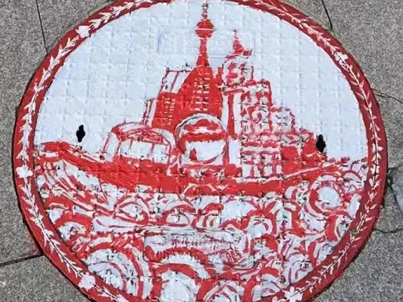 在活动过程中,志愿者充分发挥各自的创意和想象力,将红色主义精神巧妙地融合在艺术创作中。井盖上或绘制了正能量标语,或以红色故事为背景创作,生动呈现了社会主义精神内涵。它不仅是一次艺术的实践,更是推动红色精神的契机,展现艺术赋能红色文化的新时代风尚。