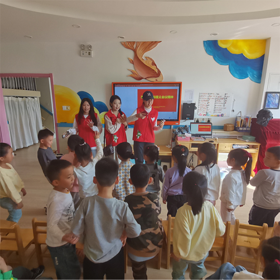 宣讲活动妙趣横生,引人入胜,小朋友们聚精会神,认真领悟,积极回答问题,与志愿者们互动。在幼儿园里,志愿者们通过角色扮演、提问梦想和团队合作等方式,教会了孩子们要坚守理想信念,注重团队合作。