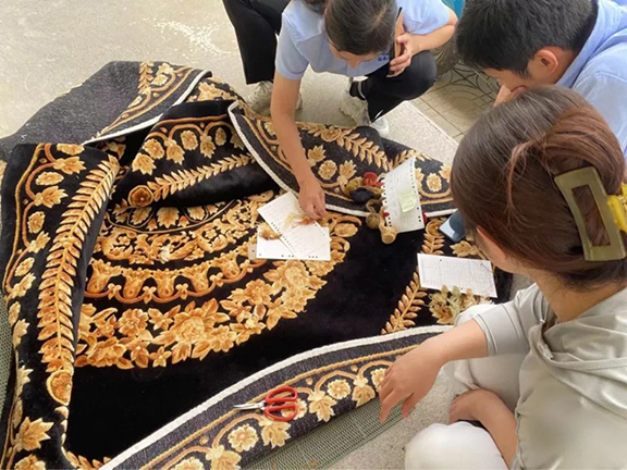 在这次瑞鑫地毯企业考察中,队员们懂得了理论与实践相结合的重要性,更多了解手工地毯背后的价值所在。匠人精神是传统手工艺的核心,也是每一块手工地毯的最珍贵的地方。通过实地调研和采访等多种形式,成员们深入了解手工地毯特色,宣传助力地毯文化传承,为今后的专业学习和文化研究提供了启示。