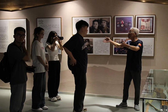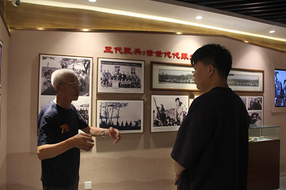 下午,实践团通过烟台市芝罘区三里桥党群服务中心与“三代民兵”吕永顺前辈取得联系,在社区工作人员的带领下,实践团队到达该社区红色文化主题展馆,与吕永顺前辈展开进一步的交流。团队成员倾听他讲述红色革命以及三代民兵的故事。