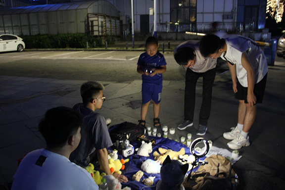 当天晚上,实践团在烟台第一海水浴场展开公益义卖活动。活动现场围观群众与实践团成员积极互动,踊跃回答团队所准备的红色革命文化的相关问题,形成文化良性互动。