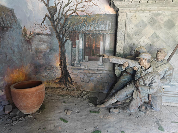 实践团到达了雷神庙战斗遗址,在庙舍中详细的记载了雷神庙在抗战期间所发挥的关键性作用。通过相关历史记载,团队了解到杨子荣在雷神庙光荣入伍。为对杨子荣作进一步的了解,通过与展馆负责人协商,实践团成功进入纪念馆进行考察调研,纪念馆共计5个大单元16个小单元,实践团通过对复原场景、历史照片文字说明以及展出的各种实物进行深入调研,对杨子荣及牟平区红色革命文化有了更加深入的了解。在长期的革命战争中,牟平涌现出了许多英雄事迹和英雄人物,为中国革命和解放做出了积极的贡献。