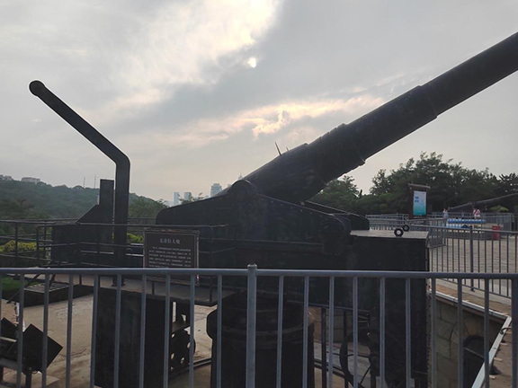 团队实地考察了东炮台和西炮台旧址。在东炮台,实践团首先调研了相关史料,随后来到了古炮台区,近距离观察保存至今的“克鲁伯”大炮。西炮台因与东炮台相对峙而得名,是我国迄今保存最完整的既有古代城堡特点又有近代先进军事设施的封闭式古炮台群。