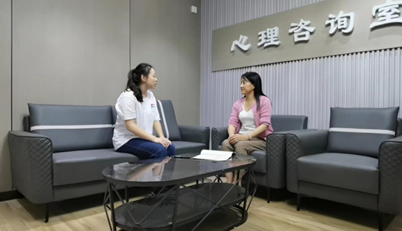 (队员采访心理教师孙晓红老师并进行交流与沟通)