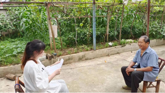 7月12日,实践团队来到湖南省隆回县对参加过珍宝岛自卫反击战,平洞核试验的退伍老兵肖体乃爷爷进行采访。在访谈中,肖体乃爷爷向成员展示了在伍时候的老照片和所获得的荣誉勋章,讲述了照片和勋章背后的故事。在访谈的最后,肖体乃爷爷鼓励大家勤学苦练,增强本领,努力成为可堪大用、能担重任的栋梁之才。