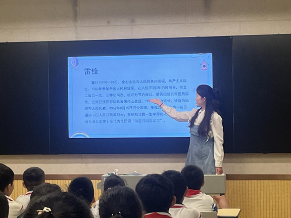 宣讲首先围绕红色精神话题展开讨论,团队按照新时代加强青少年爱国主义教育的大方向要求,丰富宣讲内容,拓宽美育途径。实践团成员用简单、通俗而又亲和的语言向小学生讲述了何为红色血脉、红色精神的含义及意义,引导学生提升爱党爱国热情,强化责任意识与担当。