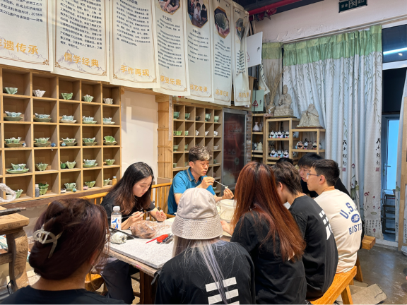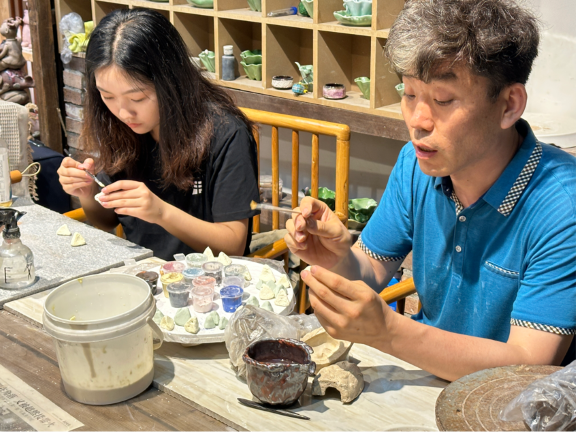 为了对济南陶塑进行深入了解,团队成员随后来到了传承人王令涛的工作室,在他的讲解下,成员们认真欣赏着每一件泥塑作品,聆听它们的历史,体悟其中包含的文化和精神内涵,细致观察每件作品的造型、材质、技艺等,了解不同工序的技巧和注意事项。随后,在王老师的指导下,团队成员亲自体验陶塑制作的过程,塑形、修胚、绘制图案,每个过程看似简单,然而实际操作起来却困难重重,只有反复练习、细致打磨、耐心绘制,才能制作出一件令人满意的作品。