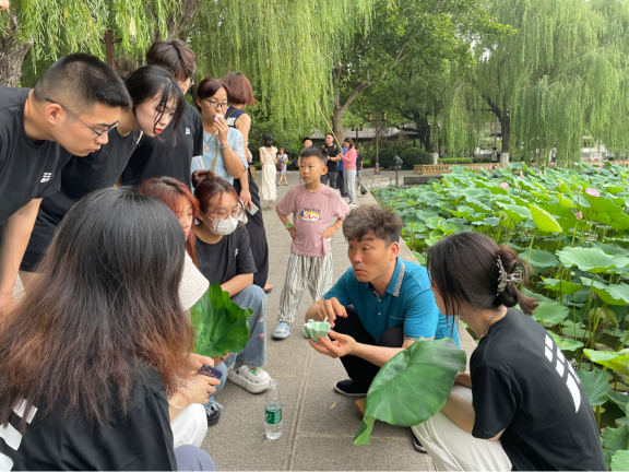 7月20日,团队成员在大明湖聆听了济南非物质文化遗产陶塑传承人王令涛的讲座。“满招损,谦受益”,“小满为盈,大满为亏”,这只包含着人生哲理的杯子,是王令涛用济南陶塑技艺所创,名为“碧筒饮吸杯”。