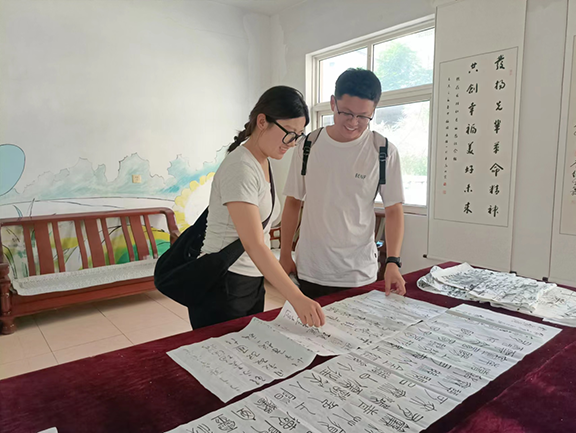 团队成员随后来到改造后的老年活动中心。由于村子位置偏僻,年轻人和孩子都不太愿意在村里生活,所以村子里现在有一半以上的人口都是老年群体。活动中心虽然场所不大,但功能全面,配有老年人休息室、书法室、锻炼活动室以及图书阅览室等。目前,整个活动中心还处于建设当中,后期团队成员可以结合专业知识,为老年活动中心做一些设计方案。