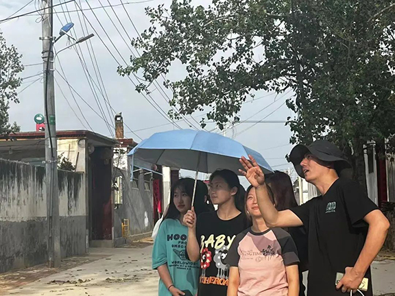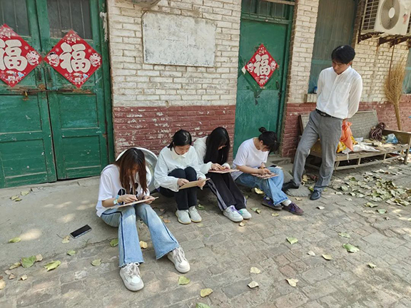 团队抵达刘李新村后,驻村第一书记朱小杰老师和村干部带领队员们走进田间地头,村民家中,走遍村里的每一个角落采风、取景,在实践中“寻找美、发现美、感受美”,将所观所想所感认真绘制在底稿中。