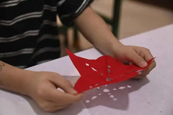 带着这份热忱,团队成员们前往山东省菏泽市牡丹华街道为当地儿童开展“指尖梦想,伴我童行”爱国教育宣讲活动。以东南乡党史为素材,为孩子们讲述了红色抗日革命故事。同时,耐心教授剪纸技艺,引导他们剪出代表团结的星星、代表和平的鸽子、代表勇敢的冲锋号等作品。