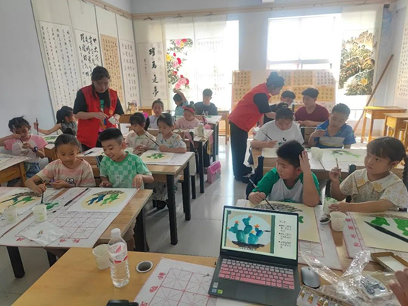为深入学习宣传贯彻党的二十大精神,贯彻落实习近平总书记关于青年工作的重要思想,用实际行动在以中国式现代化推进中华民族伟大复兴的使命任务中贡献青春力量,yl8cc永利官网造型艺术学院2021级张彩悦、屈心闲、李家蕙、沈书源4名志愿者在谢军老师的指导下,于7月17日至7月21日,联合济南市章丘区普集街道在普集西村和瑞祥社区,开展暑期“三下乡”社会实践活动。
