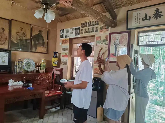 人文艺术学院2022级美术史论班的同学们在美术学教研室的邵艳芬、赵文静两位指导老师的带领下,并邀请到了数字艺术与传媒学院张光帅副院长、新媒体艺术教研室张牧主任一同对万德街道马套村古槐路、村使馆等地进行了深入的走访调研,同时为村庄旅游产业提升提供了有价值的建议和具体指导。同学们凭借他们的绘画专业理论与实操能力,对马套村旅游产业进行深度剖析,将科技赋能乡村旅游业,以期通过与现代科学技术相结合的方式来进行改进引流,促进当地文旅产业的发展。