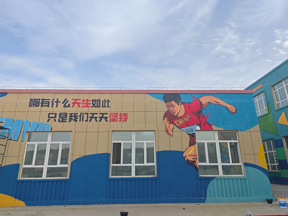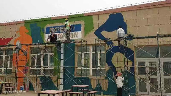 7月9日开始,服务队立即投入到火热的壁画墙绘工作中。高温天气,四五米的脚手架并不能让同学们退缩。大家克服困难,步调一致,系好安全绳戴好安全帽,一画便是一天,用实际行动传递着造型学子的优良品质。认真负责的态度和勤奋扎实的作风感染着当地的各民族群众,受到一致好评。