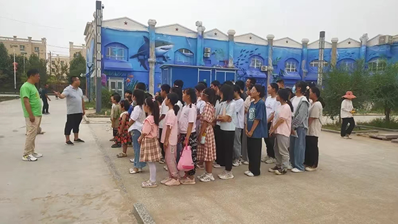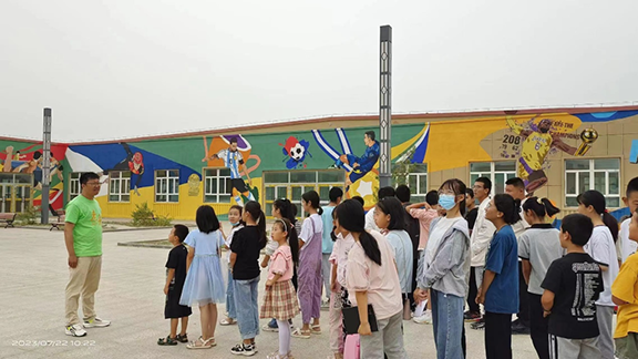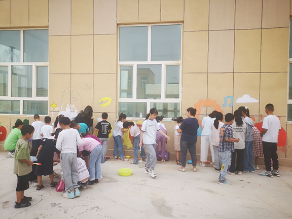 7月22日,服务队联合第十四师民族团结红军学校开展“童心向未来 丹青颂华章”主题壁画参观实践活动。齐敬峰带领小朋友们参观了服务队的工作成果,并引导其亲身体验作画过程。服务队的“青春记忆”、“海洋馆”、“美好生活”等主题墙绘,涵盖了老兵精神、航天工程、体育音乐等丰富内容,使墙壁成为切实有效的社会课堂。本次活动成功地为小朋友们上了一堂别开生面的实践课。