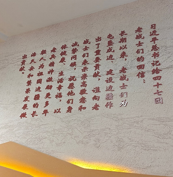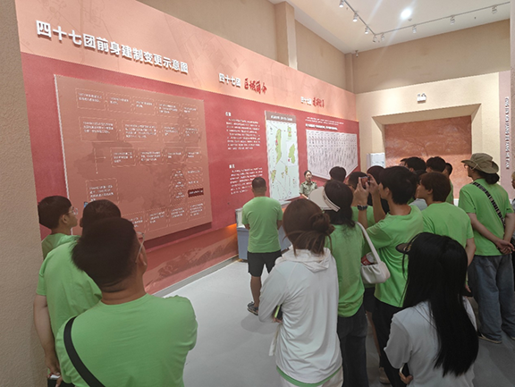 7月8日,服务队前往四十七团老兵精神展示馆参观学习,旨在让同学们熟悉当地文化背景的同时,更加深入体悟革命先辈守卫边疆、艰苦创业的英雄气概。在讲解员的宣讲中,同学们认真倾听,虚心学习,深刻感受到老兵们“献了青春献终身,献了终身献子孙”平凡而伟大、朴实而珍贵的精神。