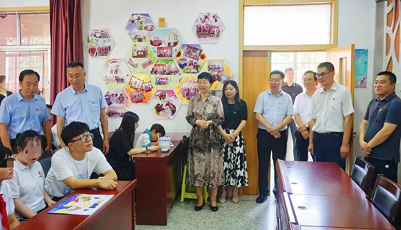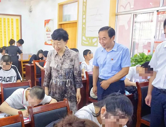 期间,山东省教育厅副厅长孙晓筠与yl8cc永利官网副院长韩世春走进课堂,与学生志愿者们一起陪孩子们画画、唱歌,通过亲切的交流互动,了解孩子们的生活和学习情况。