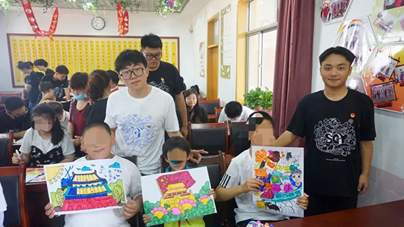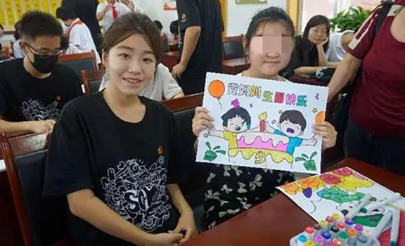 课堂上,志愿者们首先通过“了解党的历史”“品读红色故事”“画出党的风采”“唱出红色精神”等多种方式带领孩子们学习了中国共产党党史相关知识,随后孩子们在志愿者的陪同下,用稚嫩的画笔和斑斓的色彩表达对中国共产党的美好祝福和无限热爱。他们用画笔勾勒红色印记,用色彩点燃爱国情怀,把对国家的热爱和对美好未来的憧憬融入了绚丽多彩的画卷。