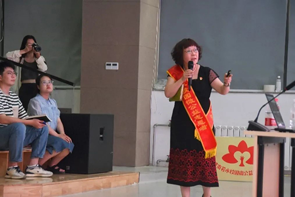 张秀华老师围绕“爱心点点,温暖人心”“爱心助学,点燃希望”“爱心无限,真情永在”三个版块,结合实际案例和师生们一起分享了公益活动的意义和价值。