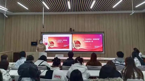 2月19日,团总支书记王苏面向全体团学干部讲团课。王苏首先部署了此次团队第一课的工作安排,随后围绕深入学习宣传贯彻党的二十大精神、学习习近平总书记有关重要论著和系列著作、深入开展国情省情教育、关心关注形势政策和青少年身边的社会热点等4个方面,与在座的团学干部展开集体学习和讨论,引导团学干部坚定理想信念,勇担历史使命,坚定不移听党话、一心一意跟党走,在青春赛道上跑出最好成绩。