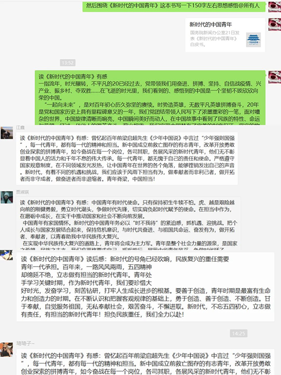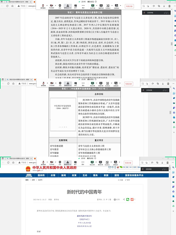 21服装工程二班等团支部学习了习近平总书记有关重要论著,围绕《新时代的中国青年》(白皮书)等系列著作开展“读书会”,引导广大团员青年深刻感悟党对青年寄予的厚望和时代赋予青年的光荣使命;