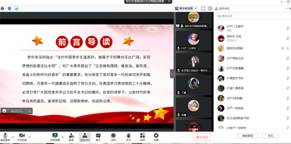 2022年11月29日,工业设计学院团总支于线上组织团支部书记开展学习交流会,共同学习党的二十大精神,交流学习心得,此次学习交流会分别从新时代下的光荣革命和争做新时代先锋两个部分带领全体团支书进行深入学习。会议结束后,大家纷纷表示要按照二十大报告中提出的新目标、新任务、新要求,不断加强学习,明确责任担当,强化纪律作风,为开创新时代新业绩做出自己应有的贡献。