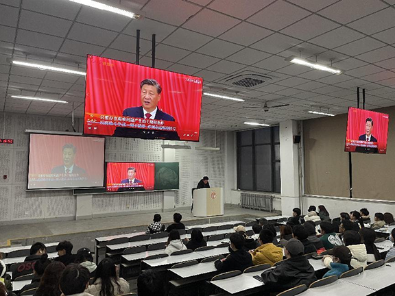观看结束后,大家心潮澎湃,感悟党和国家事业取得的历史性成就,汲取奋进新征程的强大力量。同学们纷纷畅谈学习感悟,谈感受、谈认识、谈打算,现场气氛热烈。