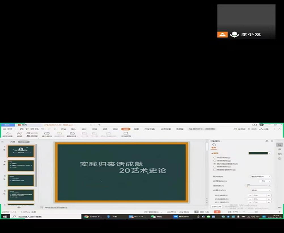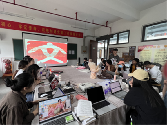 21级美术史论班,首先进行了社会实践调研报告的简单陈述,有教育实践、青鸟计划实习等等,在多个领域都有所涉及,在实践中得到了提升,学会了将理论知识应用于实践。其次,班长陈龙翔还组织进行了相关影音视频资料的观看,以及在“中青校园”app上发表的社会实践优秀案例资料的学习。