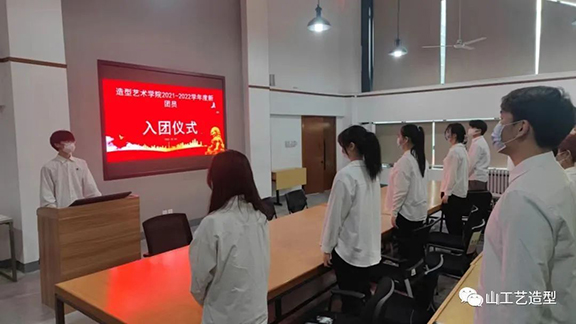 恰逢中国共产主义青年团成立100周年,为进一步传承和发扬五四精神,2022年5月4日,造型艺术学院团总支举行“喜迎二十大、永远跟党走、奋进新征程”新发展团员入团仪式,引领广大青年坚定跟党走、建功新时代,以优异的成绩迎接党的二十大胜利召开。