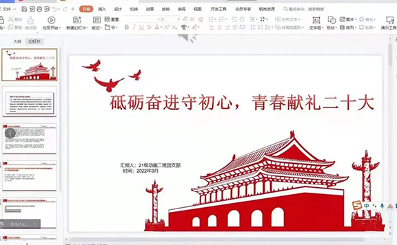 为深入学习贯彻党的十九大和十九届历次全会精神,持续巩固深化拓展党史学习教育成果,引导青年学生深刻认识党百年奋斗的初心使命和重大成就,以奋发向上的精神状态迎接党的二十大胜利召开,数字艺术与传媒学院团总支于近期组织开展了“砥砺奋进守初心 青春献礼二十大”团队第一课活动,学院全体学生参加。