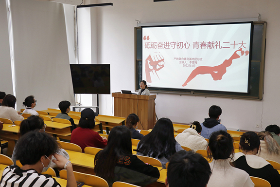 为喜迎二十大、庆祝中国共产主义青年团建团100周年,着力提升共青团组织力、引领力、服务力和大局贡献度,引导学生在中国共产党百年奋斗的光辉历程中汲取更多力量,提高学生的责任意识,4月12日,产教融合青岛基地团总支开展“砥砺奋进守初心,青春献礼二十大”主题团课活动,辅导员李雪梅为全体团员讲授团课第一课。