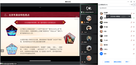 随后,各班通过腾讯会议、钉钉会议等多种线上形式,围绕“中共中央关于党的百年奋斗重大成就和历史经验的决议”、“新时代的共青团员”、“弘扬冬奥精神”等方面开展宣讲。