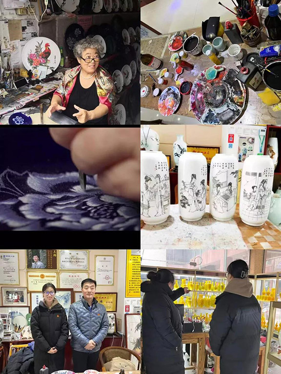 实践内容:考察了淄博地区传统刻瓷工艺技法;拜访当地非遗传承大师,进行参观与交流;自我总结,为游客志愿讲解。