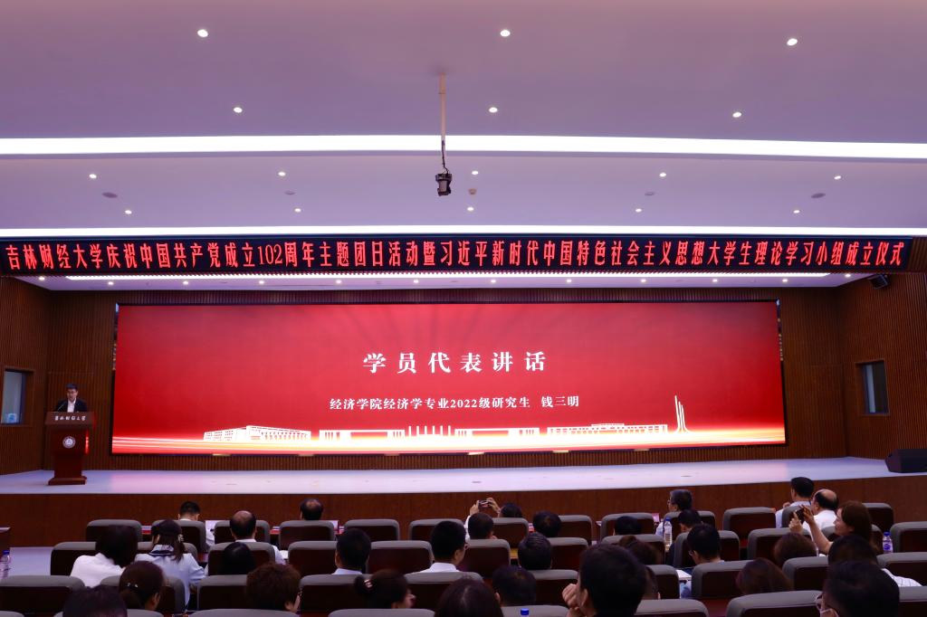 本网讯(校团委 供稿)为坚持不懈用习近平新时代中国特色社会主义思想凝心铸魂,引导青年学生进一步提升理论水平和思想政治素质。7月18日下午,Beat365在新经济(数字经济)创新创业实训中心报告厅举行了“感悟思想伟力 汲取奋进力量”Beat365中文官方网站庆祝中国共产党成立102周年主题团日活动暨习近平新时代中国特色社会主义思想大学生理论学习小组成立仪式。党委书记孙杰光,党委副书记岳宏、刘鹤,党委常委、党委宣传部部长李栋栋,党委常委、党委组织部部长庞长亮,相关职能部门、教学单位党政负责人,共青团干部,首批理论学习小组导师代表和全体学员参加了启动仪式。启动仪式由校团委副书记孙之光主持。