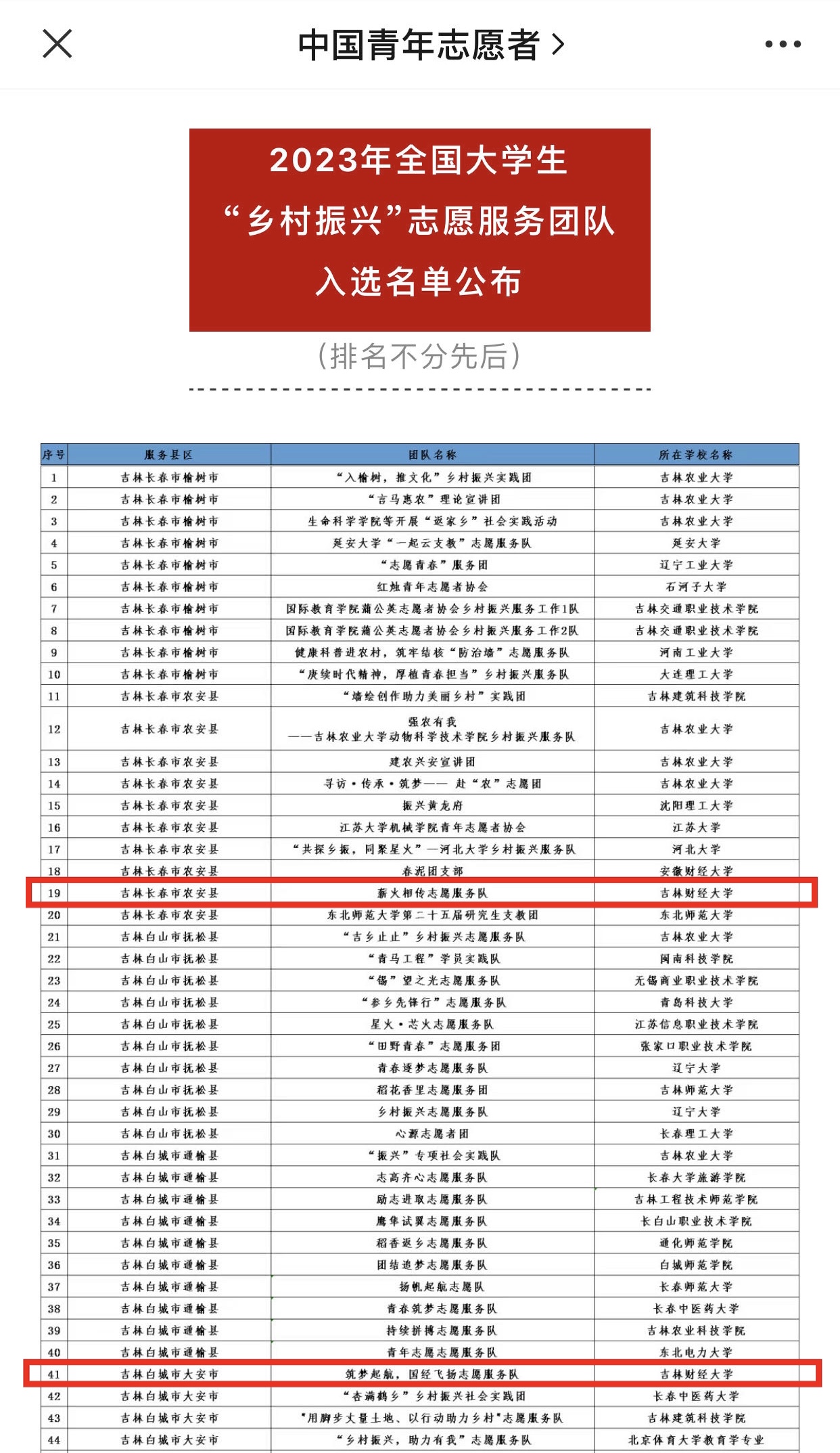下一步,校团委将以此次入选的四支志愿服务团队为带动,继续开展深入通榆县八面乡的“学伴+”志愿服务,以及8月底东北亚博览会的志愿服务工作。同时,持续推进团中央暑期“三下乡”社会实践活动及专项活动的申报和开展,并结合团省委“跟着总书记脚步看吉林”社会实践活动要求,组织动员校内各学院申报并邀请北京科技大学等省外高校共同参加,围绕“红色长春”“产业长春”“粮仓吉林”“大美吉林”等四个调研主题开展活动,引导广大青年学生关注吉林发展、参与吉林建设,坚持梦想、不懈奋斗,努力在学思践悟中笃行习近平新时代中国特色社会主义思想上下功夫,在吉林振兴的火热实践中激扬青春。(审核人 孙之光)