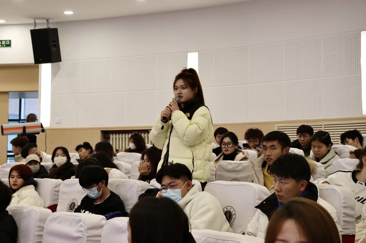 在两位代表交流、分享心得之后,现场开启了气氛热烈的交流问答环节,光荣退伍的在校生们结合自身实际回答了同学们在训练方式、优惠政策、职业发展等方面的疑问,也鼓励在场同学们积极参军,投身于国防事业,在最好的年纪为祖国国防事业贡献自己的青春力量。