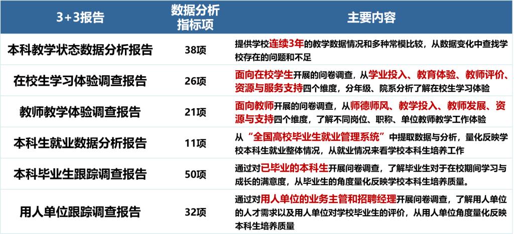 3+3报告的指标项和主要内容如下图: