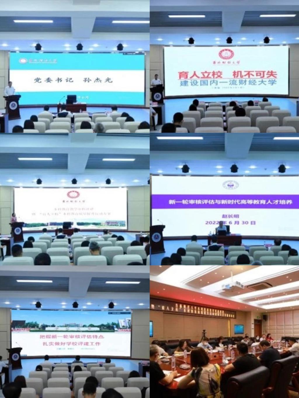 为全面贯彻落实学校第二次党代会精神,深入实施学校“十四五”发展规划,致力于建设国内一流财经大学,提高本科人才培养质量,深入推进教育教学“质量革命”,2022年6月30日下午学校召开了本科教育教学审核评建暨“育人立校”本科教育质量提升行动启动大会。校党委书记孙杰光,校党委副书记、校长童猛,校党委副书记岳宏、刘鹤,校纪委书记、监察专员丁庆东,副校长王菁华、李宝永、马秀颖,学校各职能部门负责人,各教学单位书记院长,副书记副院长,教师代表参加了启动大会。