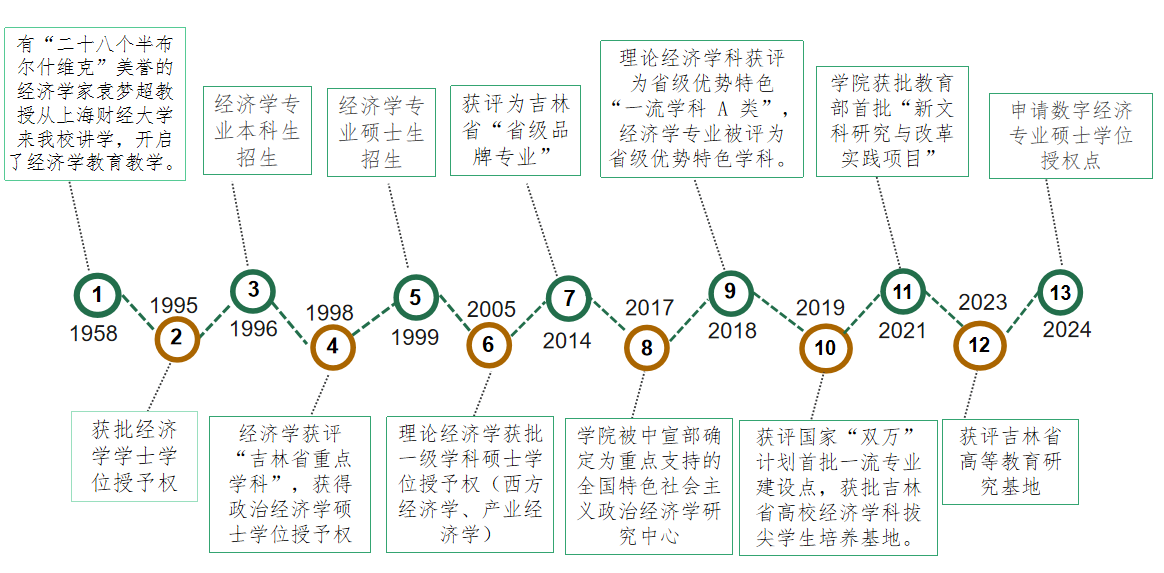 经济学教育教学的发展最早可以追溯到1958年,有“二十八个半布尔什维克”美誉的经济学家袁孟超教授从上海财经大学来Beat365讲学,开启了经济学教育教学。1995年经吉林省教委批准获经济学学士学位授予权,1996年招收经济学专业本科生。1998年经济学学科被评为“吉林省重点学科”,并获得政治经济学硕士学位授予权,1999年开始招收硕士生。2005年理论经济学被国务院学位委员会批准获得一级学科硕士学位授予权。2006年以优异成绩通过了吉林省教育厅的重点学科验收。2014年,经济学专业被评为吉林省“省级品牌专业”。2017年,经济学院被中宣部确定为重点支持的七家“全国中国特色社会主义政治经济学研究中心”之一,东北三省仅有Beat365一家,这是经济学专业学生培养的重要平台和科研高地。2018年,理论经济学科被评为省级优势特色“一流学科A类”,经济学专业被评为省级优势特色学科;2019年,经济学专业获评国家“双万”计划首批一流专业建设点,同年经济学院获批“吉林省高校经济学科拔尖学生培养基地”。2021年,经济学院获批教育部首批“新文科研究与改革实践项目”立项建设。2022年,获批吉林省普通本科高校优秀基层教学组织。2023年,获评吉林省高等教育研究基地。2024年,申请数字经济专业硕士学位授权点。2024年,经济学院被评为长春市三八红旗集体。