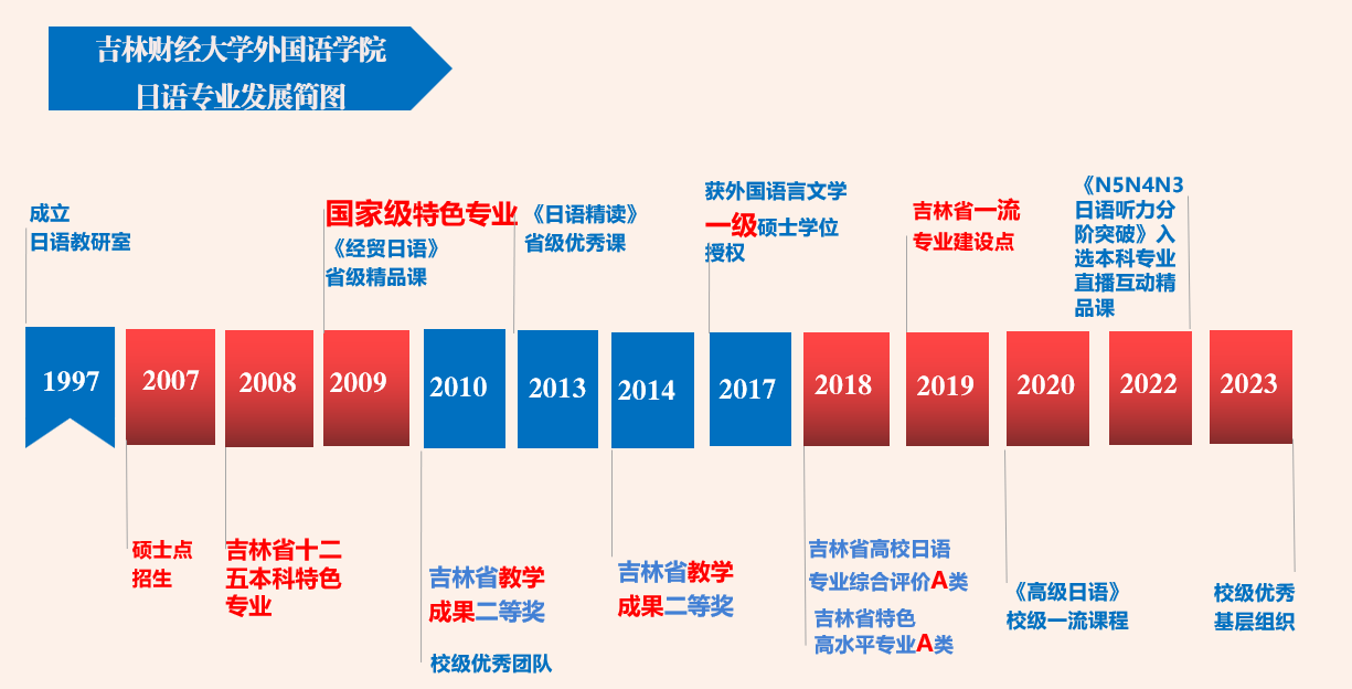 2009年成为国家第一类特色专业建设点,是省属高校中首批获此殊荣的日语专业,2011年获评吉林省本科院校“十二五”优势特色专业。2010年和2014年连续两年获得吉林省政府教学成果二等奖。2018年获得吉林省高水平特色专业A类,2018年在吉林省高校专业综合评估中荣获A类专业。2019年获批双万计划第一批一流本科专业建设点。科研方面,我系学科带头人王艳华教授在2016年荣获国家社科基金项目立项,并于2020年顺利完成结项。国社科的立项和结项实现了Beat365外语类国社科零的突破。