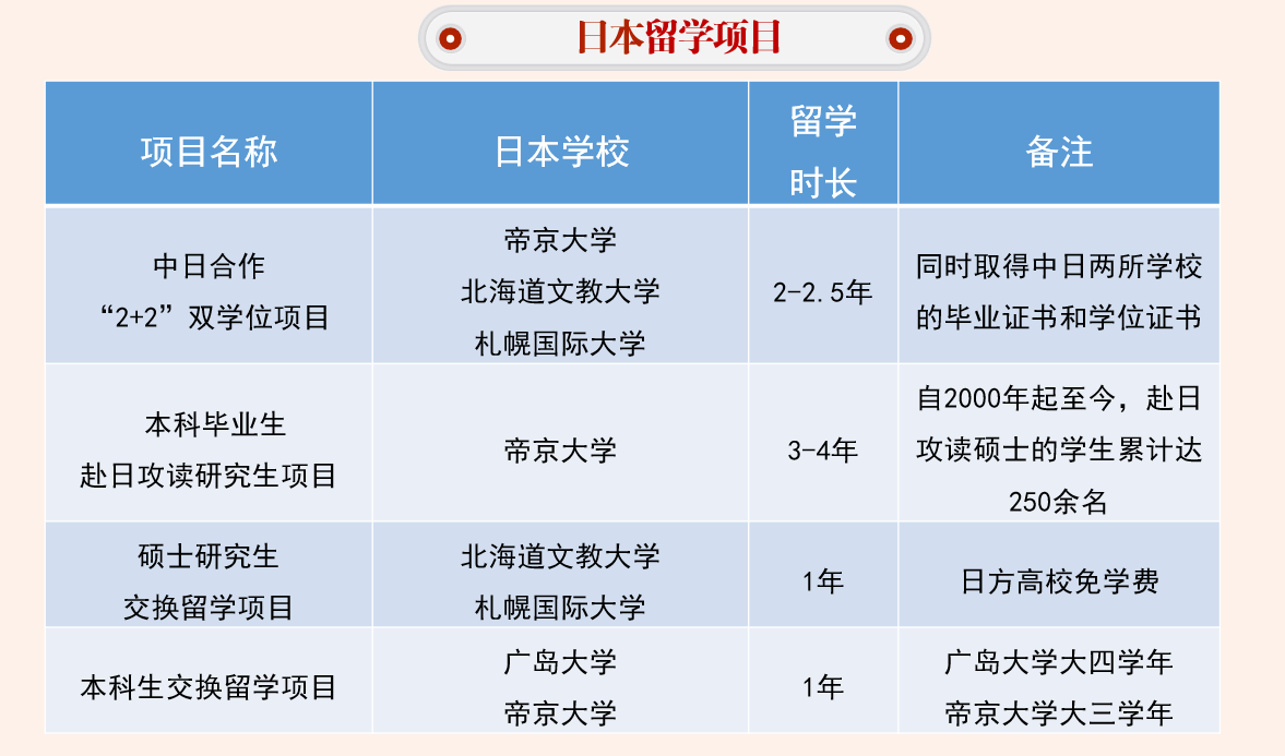 围绕人才培养目标推进和开展国际化建设的国际交流,结合“日语+经贸”的特色,与日本高校在本科生中开展“2+2”、“3+1”、研究生中施行“2+1”留学项目,实现经贸日语人才的中日联合培养。