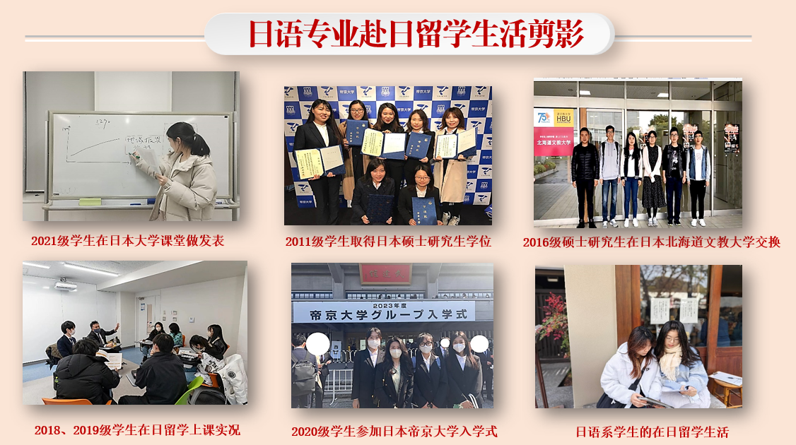 日语专业专任教师100%具有赴日本攻读学位、、讲学或进修等经历,博士化率达80%以上,全体教师都开展面向国内及国际问题的学术研究,教学科研课题呈现跨学科、融合式特色。