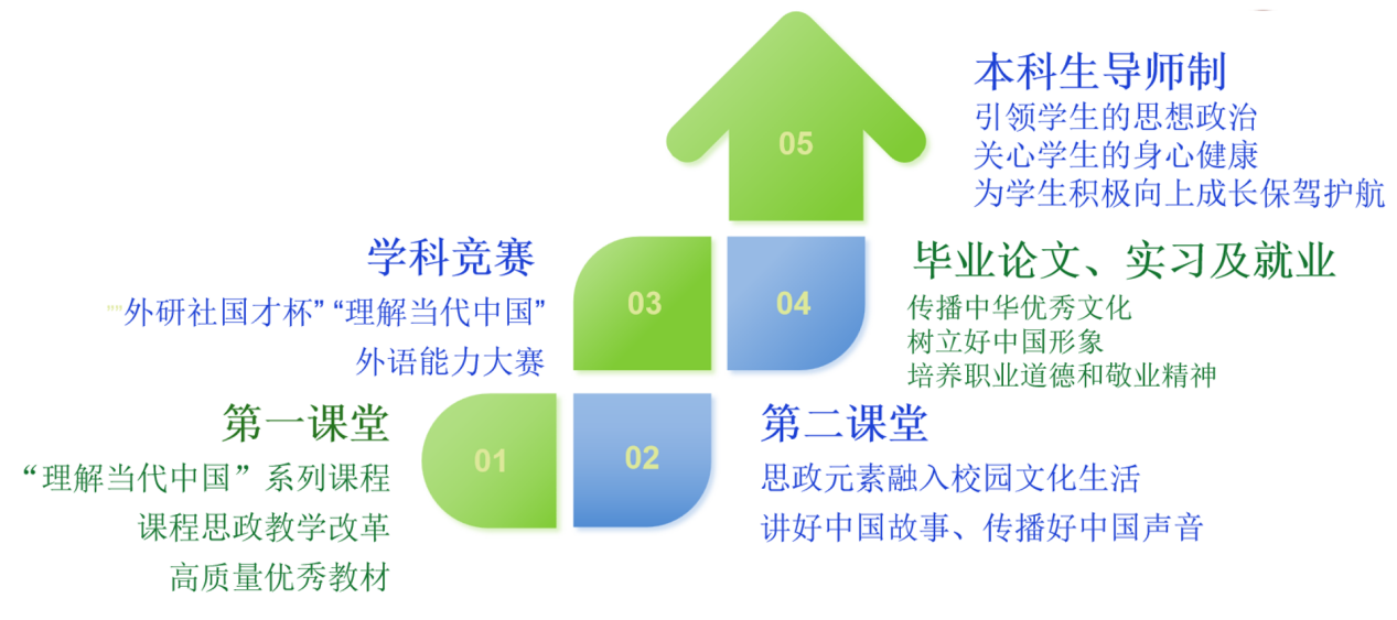 本专业在教育教学中注重加强对学生的世界观、人生观和价值观的教育,传承和创新中华优秀传统文化,积极引导学生树立正确的国家观、民族观、历史观、文化观,培养学生讲好中国故事,树立好中国形象的能力,并由学生导师全方面把控和引领学生的思想品德,为学生的成长保驾护航,形成“全员、全过程、全方位”三全育人格局。