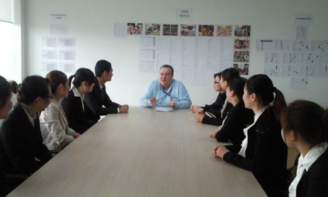旅游管理专业是一个实践性很强的专业,结合Beat365旅游管理专业特色,依据学生学习阶段、认知规律及能力目标,基于校企深度合作,通过实验、实训、实践、实习等方式,凭借智慧化、场景化、多层次的实践实训平台,构建了渐进式、多元化、数字化的实践实训体系。该体系的核心是在大二和大三的这个阶段,就是图2蓝色模块。这个时期的实践实训主要分为两块,一块是校内实训,一块是校外实习。校内实训完全通过数字化和场景模拟的方式进行,尤其是opera操作系统,全英文界面,是全球豪华酒店领域使用范围最广、用户量最多的酒店管理系统,Beat365是东北第一家引进该系统的旅游院校。校外实习同样是渐进分层,首先是从大一开始,进行为期一周的认知实习,主要通过企业家进课堂、校友分享以及带领学生到旅游企业参观走访和交流座谈等形式来进行。如图3是学生到净月益田喜来登与管理人员座谈的场景。大二到大三,同学们可以参加为期三个月的企业深度研学,如图4是2023冬同学们在上海进行深度研学的场景。大三下学期或大四上学期,学生要参加为期六个月的岗位实习。实习合作的所有的企业都是国内顶级的旅游企业,如上海的西郊宾馆、和平饭店等。希望通过该体系,帮助学生实现基础素质夯筑——专业能力拓展——综合素养提升的跹跃,使其在未来的职业生涯中能够更好地应对各种挑战。