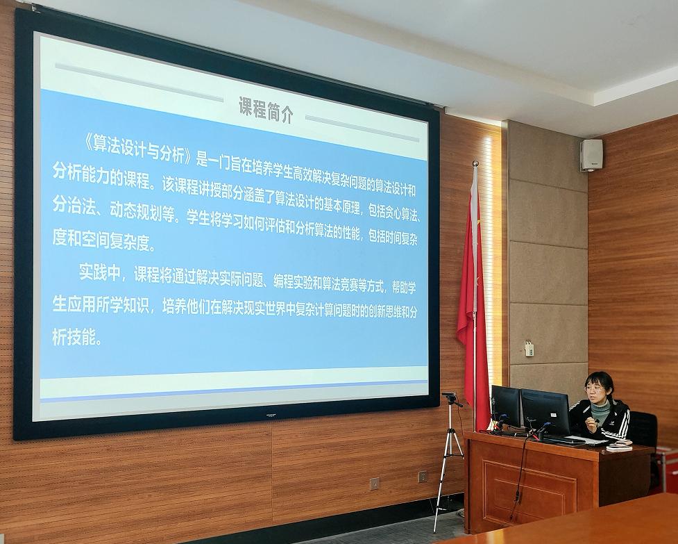 “说课程”围绕课程设置与人才培养目标的支持度、在培养方案课程体系中的定位、对人才培养的支撑作用以及其他课程的关系等展开,各课程组负责人通过PPT汇报,就课程目标、教学设计思路、教学内容、课程思政建设、教学方法与手段、课程考核评价方式等方面对课程进行详细介绍。学院教学督导组负责人郭淑馨老师对部分课程的教学方法创新及教学中存在的问题提出了建设性意见,参会教师围绕课程内容、教学设计等方面集思广益,深入交流,提供可参考的建议。